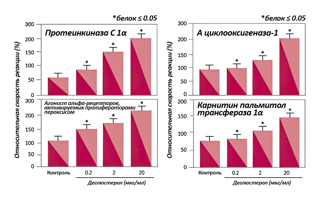Уровень транскрипции генов, связанных со всасыванием глюкозы, был повышен при применении Деглюстерола дозозависимым образом