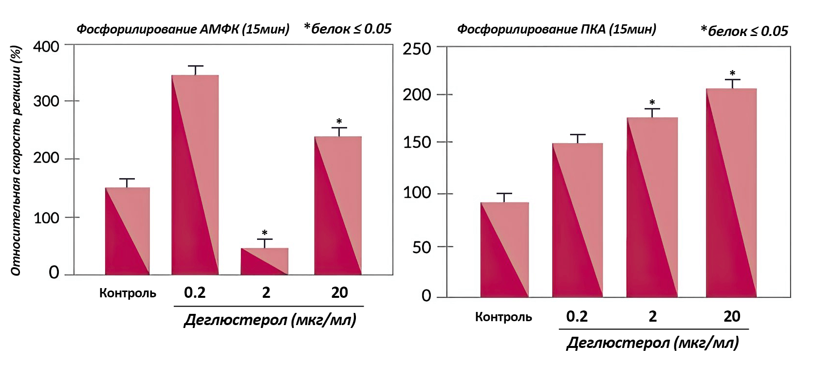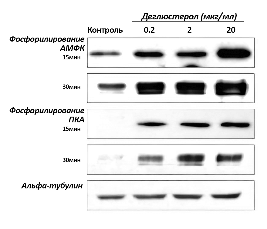 Уровни фосфорилирования АМАПК и ПКА, нисходящей молекулы АМАПК, были увеличены методом применения Деглюстерола.